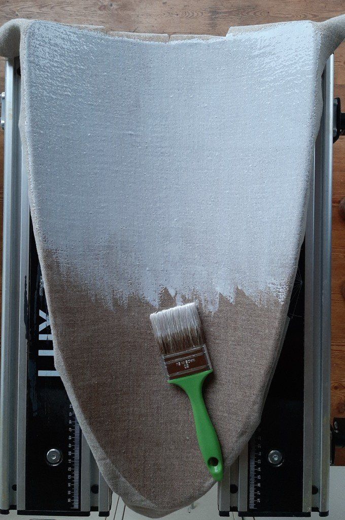 Ich male alles rein mit Pinseln ohne Abklebungen und verzichte auf Spraydosen, so erhält der Anstrich auch den nötigen „Handwerkscharakter“ und wirkt auf der Leinenstruktur zudem sehr hochwertig. Blattgold- bzw. Blattsilber trage ich in der Anlegetechnik auf, welche nach ca. 24 Stunden mit speziellem Klarlack versiegelt werden, um die Widerstandsfähigkeit zu erhöhen. Sollten Elemente zum Vergolden sehr groß sein, verwende ich Blattgold-Effekt-Lack, um wiederum die Kosten nicht explodieren zu lassen. Die Innenseite der Schilde gestalte ich meist neutral in Grau, das ist natürlich jedem selbst überlassen, für welche Farbe man sich hier entscheidet. Dann erfolgt die Gestaltung der Außenseite, den ersten Anstrich unbedingt zügig und schnell durchführen, da der wasserverdünnbare Lack den nicht wasserfesten Kaltleim beginnt anzulösen. Sollte es doch zu Ablösungen kommen, auch Risse können sich während des ersten Trockenprozesses in der Lackschicht auftun, ist das kein Problem, denn es ist ohnehin notwendig, den Schild 2-fach zu bemalen. Beim zweiten Anstrich verschwinden solche Stellen. Ist alles fertig und gut durchgetrocknet, mattiere ich die Oberfläche mit feinem Fließ und patiniere mit einer aus wasserverdünnbaren Lacken hergestellten Patina per Schwamm, vor allem, wenn die Farben sehr intensiv sind. So erhält der Schild einen antiken Touch und auch Verletzungen durch Schwert oder Axt fallen nicht so auf. Sollte es dennoch mal zu Verletzungen der Lack-Leim-Leinenschicht kommen, lassen sich diese einfach mit wasserfestem Express-Leim sehr schnell reparieren und eine Restaurierung der Lackschicht ist meist nicht nötig. Spuren von Schwertern oder Äxten usw. tragen eigentlich sogar dazu bei, den Schild noch authentischer wirken zu lassen. Einige aufmerksame Leser werden sich nun denken, was ist denn mit den Riemen und der Polsterung, der Schild ist nun eigentlich optisch von außen betrachtet bereits fertig? Dazu komme ich im nächsten Absatz.